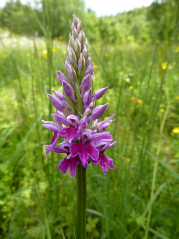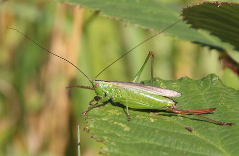 Within the Coryton Roundabout is a mix of woodland, flowery grassland and scrub. During public walks around the site led by the Society an unusual deep-purple form of the Common Spotted Orchid (Dactylorhiza fuchsii var. rhodochila) was found. On another occasion, a species of bush-cricket, a Long-winged Conehead, was spotted, a first for Wales.